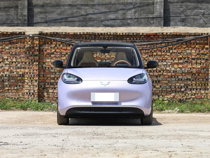 我们首先来看新车的外观设计方面,缤果的车头设计完美诠释了 “复古与现代的碰撞”。圆润饱满的引擎盖线条延伸至前脸,搭配封闭式进气格栅,既符合纯电车型的科技属性,又传递出经典车型的优雅气质。格栅中央的五菱银标采用高亮处理,与两侧圆润的 LED 大灯无缝衔接,灯组内部的环形光带点亮后如同 “微笑曲线”,夜间辨识度拉满。前保险杠采用一体化圆润设计,下方的梯形进气口经过黑化处理,既优化了散热效果,又为车头增添层次感。雾灯区域以镀铬饰条勾勒轮廓,与格栅饰条形成呼应,提升精致度。